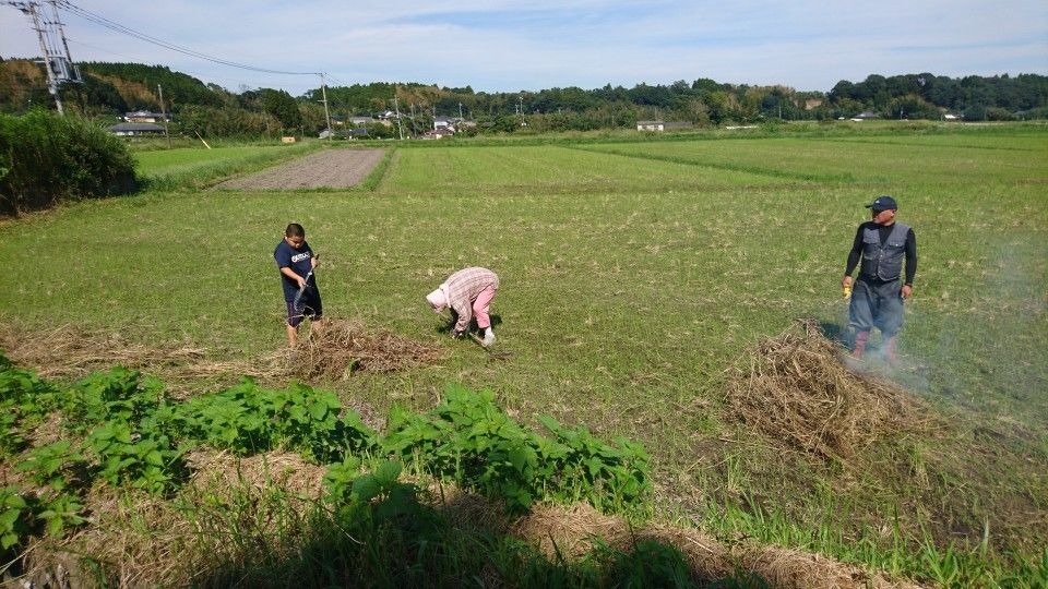 休日は、畦刈りや刈った草の処理に子供達も応援‼