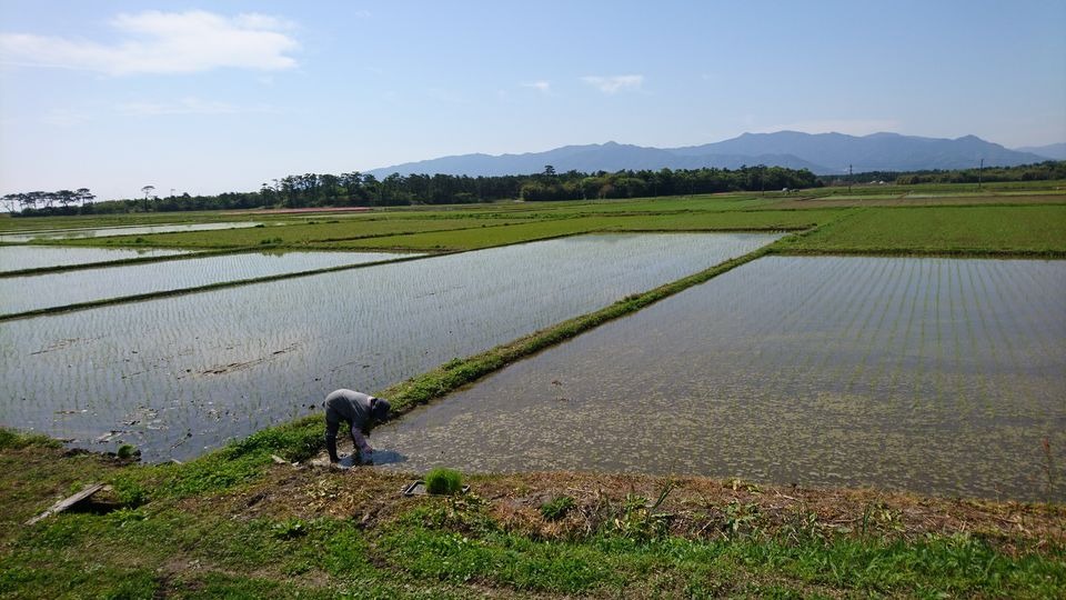 田植え前半は、雨風の強い日が数日ありましたが、後半は気持ちのいい天気が続きました
